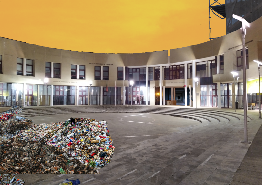 As estética deste projecto foi inspirada em colagem (como pode ver por esta imagem) dadaista e surrealista para ser mais específico. Eu também tentei com que a cor do céu de cada cenário correspondece com o tópico como por exemplo, o céu deste cenário é amarelo porque o tema do segmento em que ele é utilizado é drogas e o vício.